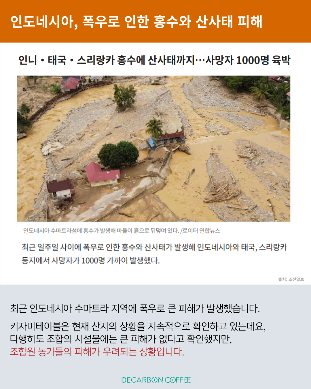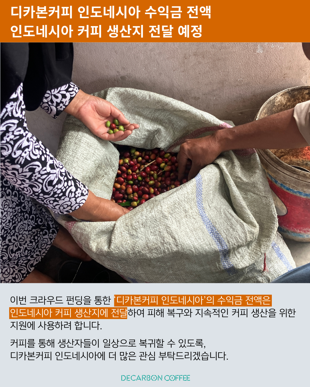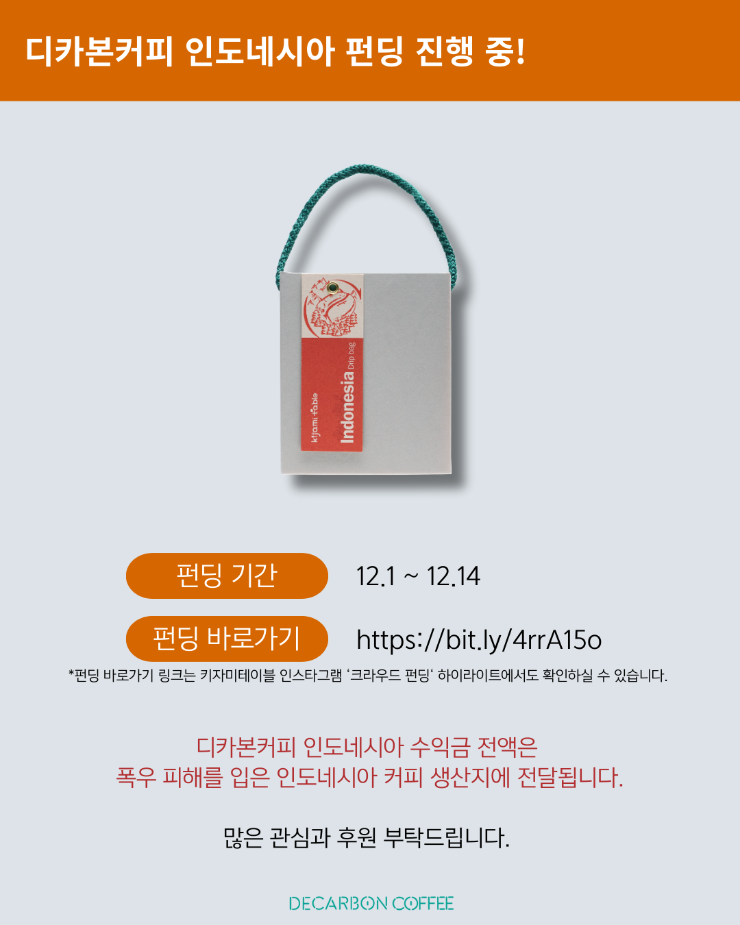 [키자미테이블] 디카본커피 인도네시아 펀딩 중! 수익금 폭우 피해 지역 전달(~12/14)