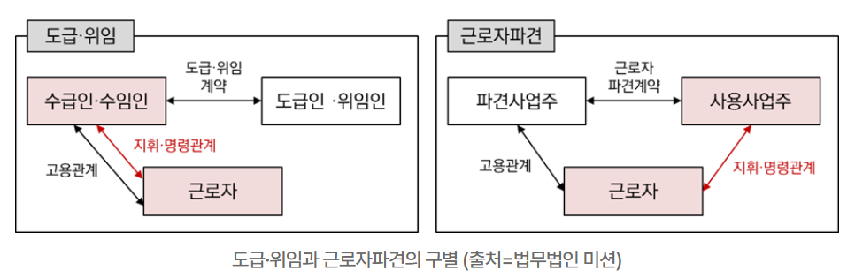 원문 : [법무법인 미션] 우리 회사도 모르는 사이 불법파견? – ‘도급’과 ‘파견’ 구별 기준 및 법적 리스크